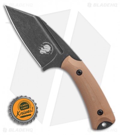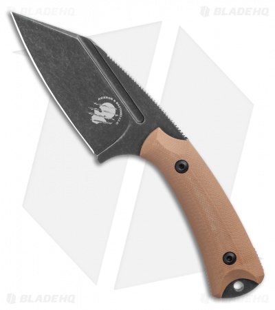 The Akeron La Sanction by Bastinelli is a compact tactical fixed blade knife with versatility to the next level. The dramatic Wharncliffe blade has a swedge making it easy to penetrate with, and the long gimping on the blade makes it easy to hold on to in a variety of grips. It has a tan G-10 handle and a Kydex sheath.