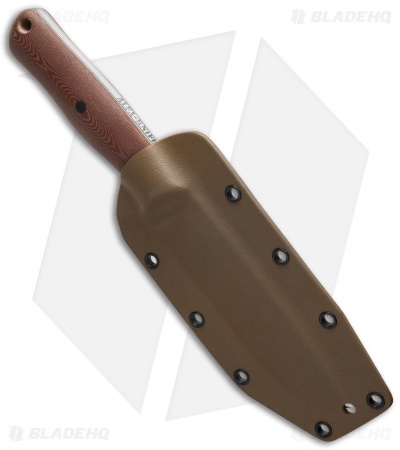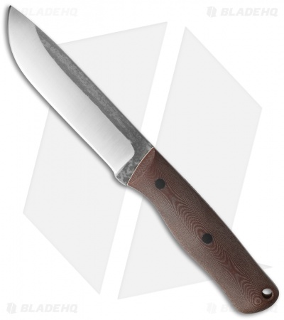 This Ak1 Major Bush knife is outfitted with brown linen Micarta scales. As with other Alfa Knife models, the handle is properly shaped to enhance grip and ensure lasting comfort in hand. The full-tang blade is 3/16″ thick O1 steel, treated and convex ground by Damon. A fitted sheath is included with this knife.