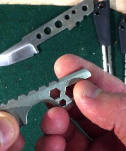 The Bottle Defense Tool (BDT) is a pocket-sized knife with hex cutouts and a bottle opener. The ridges on the spine along with the deep index finger groove provide a sturdy grip. The S35VN steel is Bos heat treated and then stonewashed. The Kydex sheath is perfect for neck carry or attachment to your keychain.