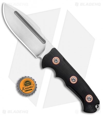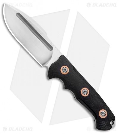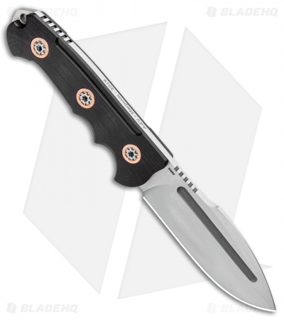 This Harpoon fixed blade has a black G-10 handle with copper collars and a satin finished harpoon blade.