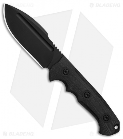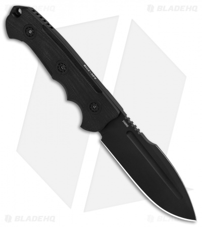 This Milspec Harpoon fixed blade has a black G-10 handle and a full-tang black cerakote finished blade.