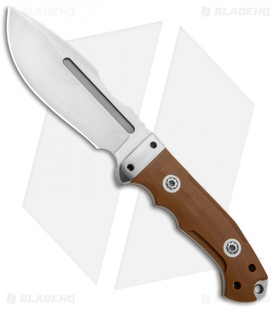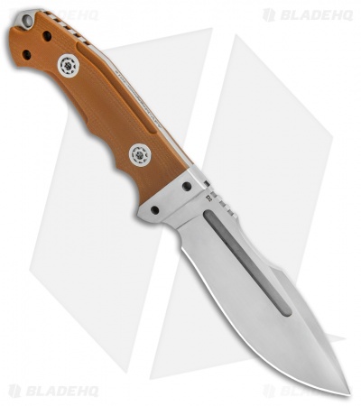 - Contoured G-10 handle scales facilitate an ergonomic grip.