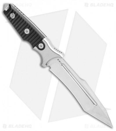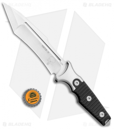 This Recce-2 fixed blade has a black G-10 handle and a full-tang D2 blade in a satin finish.