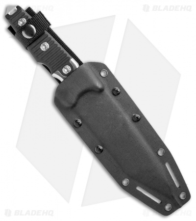 The Andre De Villiers Recce-2 Fixed Blade Knife is not for the faint of heart. It has a full tang D2 blade sandwiched between G-10 handle scales with steel bolsters. The wicked recurved tanto blade has a deep hollow grind along its main stock and a sturdy flat grind at the tip. The butt of the knife features a strike pummel and a lanyard hole. The knife comes dressed in a black kydex sheath with a nylon belt loop. The Recce-2 is gnarly in all the best ways and outfitted with everything you need to get the job done.