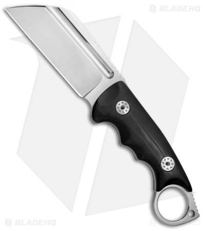 The Ring Butcher fixed blade offers a distinctive Andre De Villiers design based off of his infamous Tac Butcher knife. This model sports a full tang modified sheepsfoot blade with an extended tang finger ring. The ring secures the blade in hand, while providing a striker and a lanyard hole. Finger grooves and heavy thumb rest jimping add further to the high performance grip. Add a solid tactical fixed blade to your rotation with the Andre De Villiers Ring Butcher.