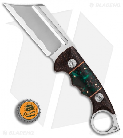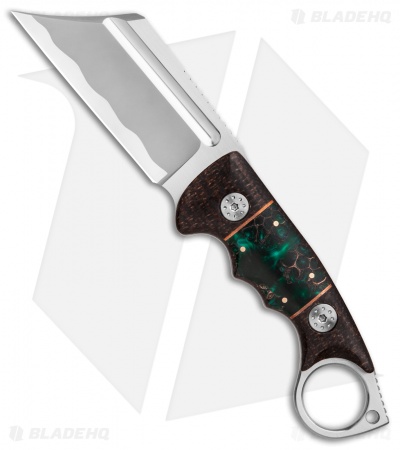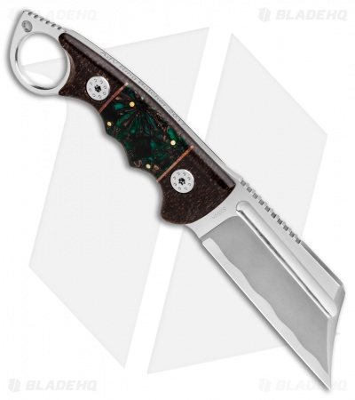 This Ring Butcher model sports a micarta handle with unique green pine epoxy scales and a satin finished blade.