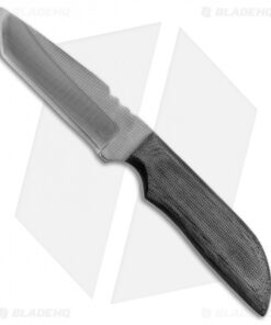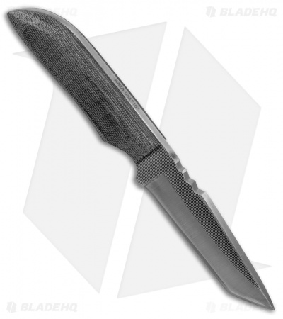 - Gray micarta handle over full tang for grip.