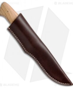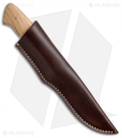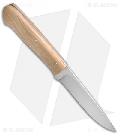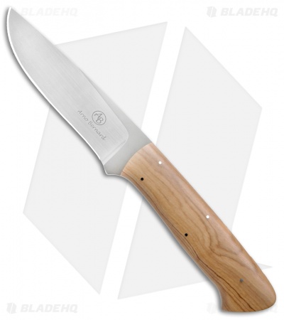 This Croc fixed blade from Arno Bernard Knives features a Wild Olive handle and tapered full-tang N690 stainless steel blade with a satin finish. Includes a buffalo hide sheath.