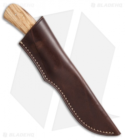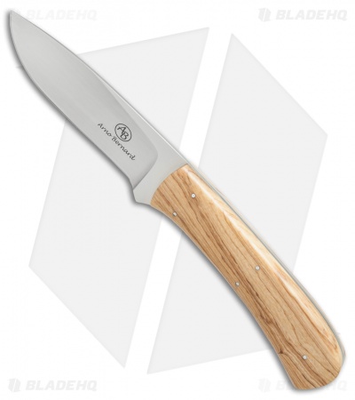 This Kudu knife from Arno Bernard Knives features a Wild Olive handle and full-tang N690 stainless steel blade with a satin finish. Includes a buffalo hide sheath.