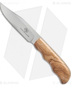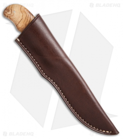 This Vulture knife from Arno Bernard Knives features a Wild Olive wood handle and full-tang Bohler N690 stainless steel blade with a satin finish. Includes a buffalo hide sheath.