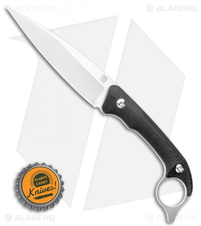 The Hystrix fixed blade from Artisan Cutlery is designed by Dylan Mallery. Mallery’s designs strive for an edgy aesthetic while being completely versatile. The Hystrix is outfitted with a black G-10 handle with a finger ring to maximize handling. The drop point blade is satin finished and made out of AR-RPM9 stainless steel. AR-RPM9 steel was created to be affordable yet hold its edge, sharpen beautifully, and prevent corrosion.