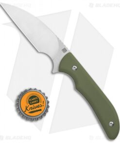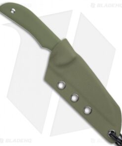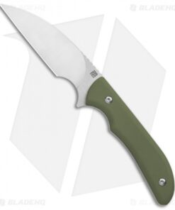 - Green G-10 handle scales over a full tang.