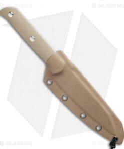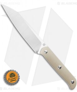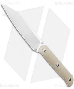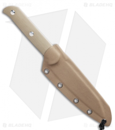 The Artisan Cutlery Silax is a sharp fixed blade knife designed by Dylan Mallery. The wharncliffe blade is satin finished and made out of AR-RPM9 stainless steel. AR-RPM9 steel was created to be affordable yet hold its edge, sharpen beautifully, and prevent corrosion. The handle is tan G-10 with satin rivets. The G-10 is incredibly soft when using the blade. The Silax has full-tang construction that ensures years of use and prevents any blade breakage. Included is a matching tan, Kydex sheath with a neck cord.