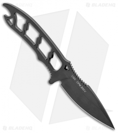Attleboro Knives Dau Tranh Fixed Blade Neck Knife w/Black Sheath (2.5″ Black)