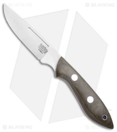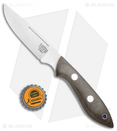The Bark River Knives Adventurer II Knife features a compact, easy to carry design for everyday use. This model sports a OD green canvas micarta handle with a thumb relief for use in a lateral hold while skinning or performing other hunting chores. Its full-tang, Elmax steel drop point blade holds a razor sharp edge that excels during fine work and heavier cutting tasks when necessary. Includes a brown leather sheath with a belt loop.