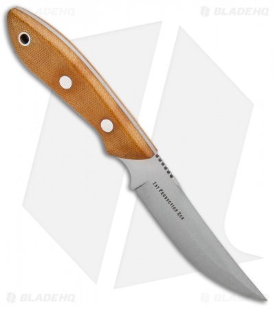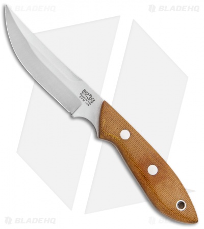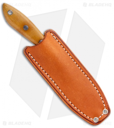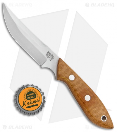 The Bark River Adverturer Persian is a full sized fixed blade knife ready for any camp or hunting chore. Crucible CPM-154 stainless steel is the perfect combination of tough, corrosion resistant and edge retention for a outdoor fixed blade knife. The natural canvas micarta scales are palm filling for a secure and comfortable grip. Weighing 7 ounces, the knife is lightweight in hand or in the included hand made leather belt sheath.