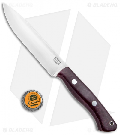 This Aurora II fixed blade features a satin finished CPM-3V blade and a burgandy Canvas Micarta handle. Includes a genuine leather belt sheath for secure carry.