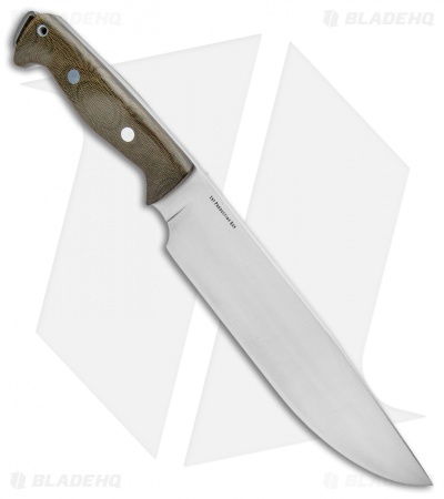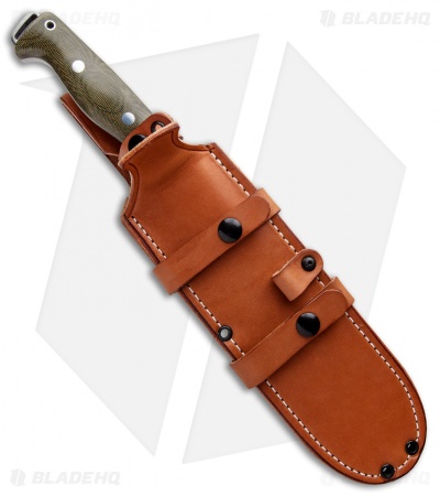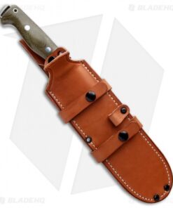 This Bravo Crusader model is outfitted with a green canvas micarta handle and a satin finished 3V steel blade. The Bark River Bravo Crusader is a full-size outdoor fixed blade built tough with an over 1/4″ thick full tang design. A convex ground blade provides versatile cutting performance for hunting applications. Item includes a premium leather belt sheath.