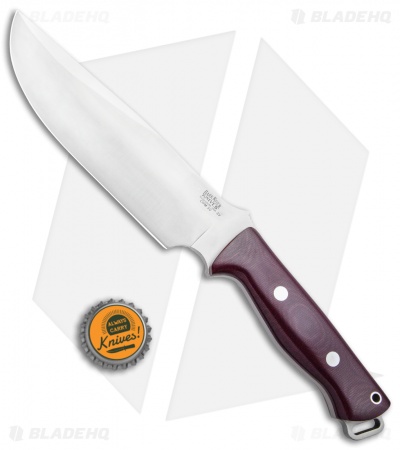 When you need a full size knife that can stand up to anything, then the Bark River Bravo Survivor is for you! With a blade length in excess of 7 inches and more than a quarter of an inch thick, hacking, slashing and chopping doesn’t phase this knife. The spine features a generous thumb ramp with functional jimping for an excellent purchase on the knife. Contoured burgundy micarta handle scales, sandwich the full tang blade with integrated lanyard slot. With the addition of the large finger choil, you can choke up on the blade for more detail cutting tasks. Includes a hand made leather belt sheath with snap closure for convenient and secure carry.
