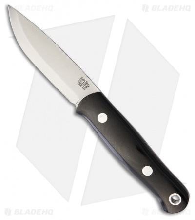 The Bark River Bushcrafter fixed bladed knife with black canvas micarta scales is a scaled down version of the popular Bark River Bushcraft. The 3.875″ Crucible CPM-154 stainless steel blade combines toughness, edge and corrosion resistance. Contoured black canvas micarta scales provide a comfortable and secure grip in hand even after prolonged use. Excellently well balanced, the 6.6 ounce weight is barely noticeable in hand or on your belt with the included hand made leather belt sheath.
