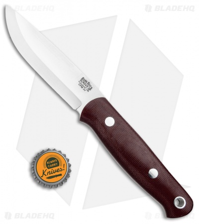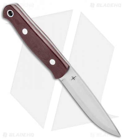 This Bushcrafter II fixed blade is built with a full-tang CPM-3V steel blade and a burgundy canvas micarta handle.