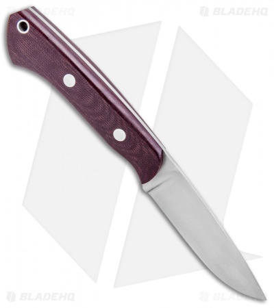 This Featherweight Fox River knife sports a burgandy canvas micarta handle and an Elmax steel blade.