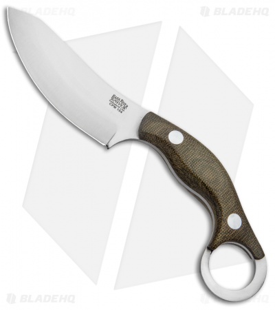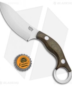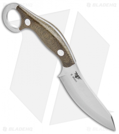The Bush Bat is a collaborative design from custom knife maker Shane Wink, outdoor expert Chris Tanner, and Mike Stewart. They combined the tactical capabilities of a karambit with the functionality of a skinning knife. The sweeping wharncliffe blade is fantastic for skinning but will also excel with light to medium cutting tasks. Fire or food prep, game processing even carving is a breeze with the convex edge scandi grind. The uniquely shaped micarta handle helps elevates the fingers above the cutting edge for comfortable use. Included is a hand made leather neck sheath that holds the blade securely in place with rare earth magnets.
