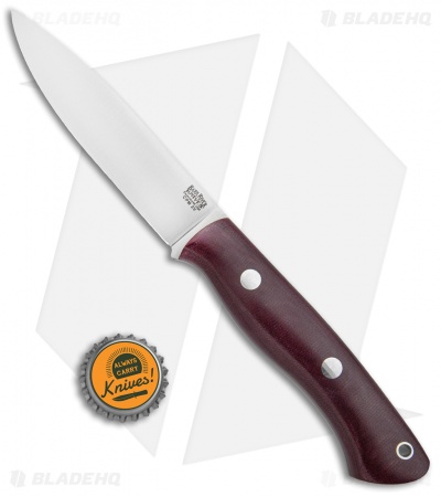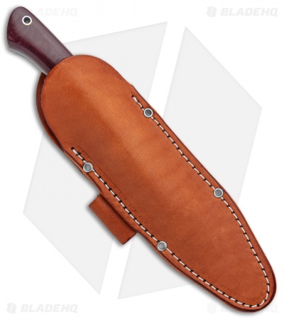 This Aurora model is built with a full-tang CPM-3V steel blade and a contoured Burgandy Canvas Micarta handle.