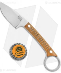 Featuring CPM-154 full tang stainless steel, the Ringtail can easily take on any of your small camp or hunting chores. Excellent as bird or trout knife or woodcarving, the slender natural canvas micarta scales are comfortable in hand, while the ring allows for a myriad of grip options. The Ringtail can be easily carried as a neck knife with the included hand made leather sheath.
