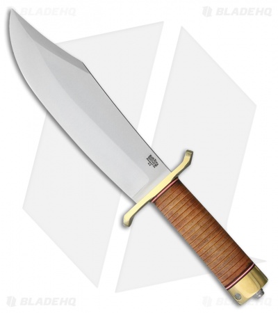 Bark River V-44 Bowie Fixed Blade Knife Stacked Leather (9″ Satin)