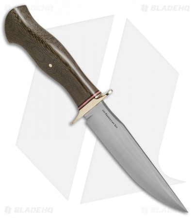This Vest Pocket Bowie C model is outfitted with a Green Canvas Ivory Micarta handle and a satin finished A-2 steel blade.