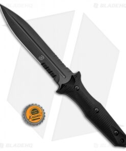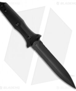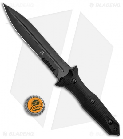 Take on any tactical challenge with the GROZO from Bastinelli Creations. This model sports a black G-10 handle and a black PVD coated blade with a partially serrated double edge. Subtle contouring and a curved guard provide maximized functionality in difficult situations. Item includes a kydex sheath with a clip attachment for secure carry.