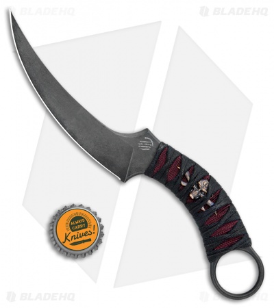 This Mako model comes equipped with a red and black cord Tsuka wrapped handle and a black stonewashed blade. Tied into the handle is a bronze skull Menuki.