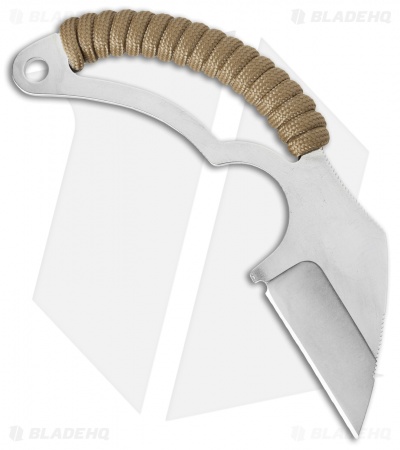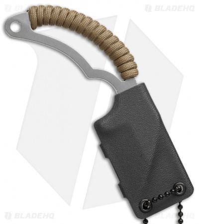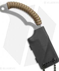 This Bastinelli Creations Moon’s Kiss neck knife has a polished stainless steel blade and a coyote brown cord wrapped skeletonized handle. The included Kydex sheath has a neck cord, so it’s ready to be used.