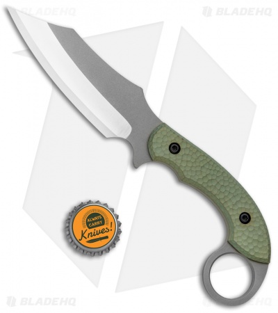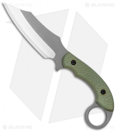 - Titanium, acid green anodized handle with a Karambat traditional finger hole.
