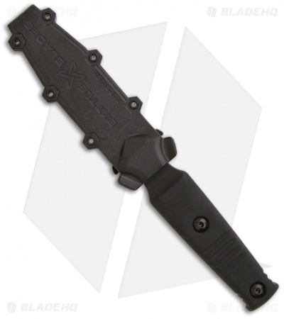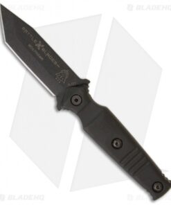After showing his Prototype at the 2012 Shot Show, Kelly was able to introduce his new system. The reception for the Battle Blades System was most enthusiastic from military and outdoorsmen alike. The knife has a black tanto blade and a black linen micarta handle.