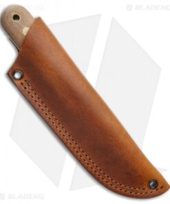 The BHK Bushcrafter knife features a solid build that tackles outdoor chores with incredible ease. It has a full-tang, spear point blade made from resilient O1 tool steel for working wood and drilling. The handle is free of hot spots, and stays comfortable in hand during regular daily or intensive use. This model sports rounded natural Micarta handle scales and includes a leather hip sheath.
