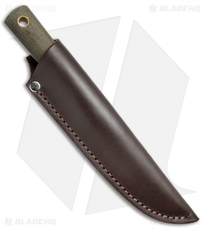 This Maverick Scout model has an OD green micarta handle and a satin finished blade with a flat grind.