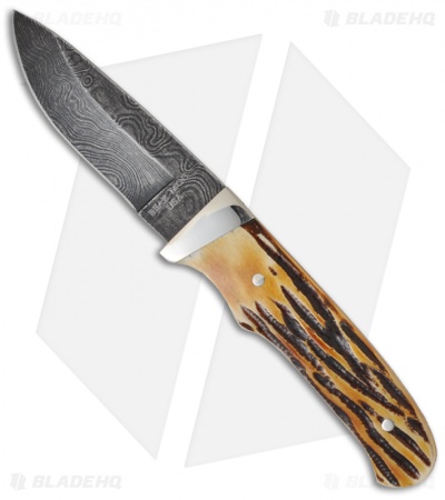 Bear Cutlery Damascus India Stag Bone Pro Skinner Knife (3.625″ Plain) 549D