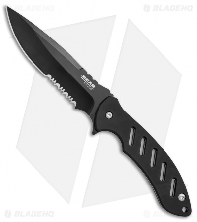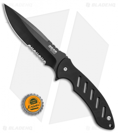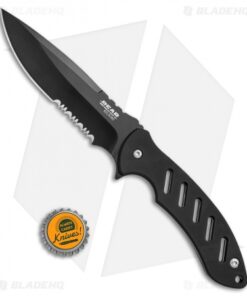This fixed blade version of the Brisk sports a stainless steel handle with a black coating and a black finished blade. It offers a full tang design with a skeletonized handle for reduced weight. The large blade is made from 440 stainless steel with a hollow grind and a partially serrated cutting edge. This EDC fixed blade design is hefty enough for any cutting job, yet slim enough for comfortable carry. Item includes a nylon belt sheath with a buckle snap.