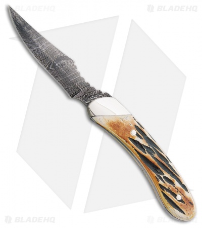 Bear & Son Caper Fixed Blade Knife Genuine India Stag (2.5″ Damascus) 5009D