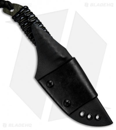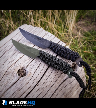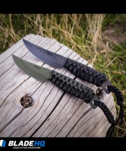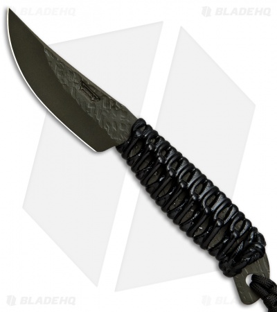This Behring Made Pro LT Caper is hand forged from durable high carbon O1 tool steel with a hammermark finish and protective OD green Cerakote. Its handle is wrapped with black paracord for added grip, and has been marine epoxy treated to prevent the absorption of blood or dirt. Comes complete with an all-weather sheath and leather belt attachment.
