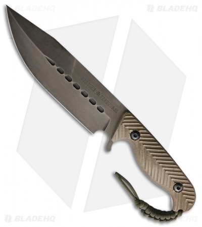 At 12″ long and 1/4″ of O1 tool steel, the F-1 can tackle even the most challenging cutting tasks. A generous finger choil allows you to choke up on the blade for excellent control on those more detailed tasks with a clip point hollow ground point, fantastic for piercing. Contoured and grooved micarta scales provide a sturdy and secure grip. Includes leather belt sheath.