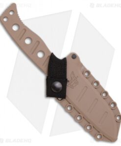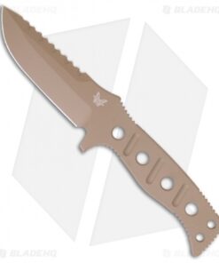 This Benchmade Adamas fixed blade combat knife was designed by Shane Sibert. This Benchmade knife has a D2 steel drop point blade has a plain cutting edge and jimping on the spine. The handle is skeletonized with optimally positioned grooves. The Fixed Blade Adamas knife also comes with a tan molded sheath with secondary locking strap and tension screw for secure storage and custom tuned deployment.