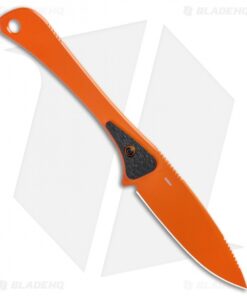 - Orange-coated drop point blade made from CPM S90V stainless steel.