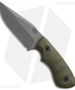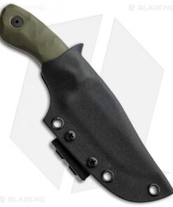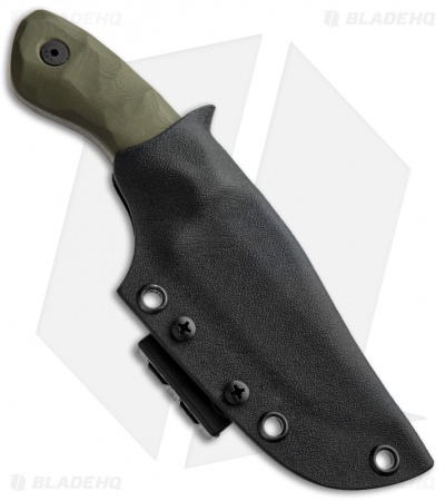 The Ridgeback Custom knife is a small belt knife perfect for everyday chores. It is made from N690 stainless steel and features an acid wash finish. The handle is made from sculpted OD green G-10. Each Kydex sheath is custom made as the texturing on each handle is unique to every knife.