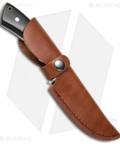 This BlackFox Hunting fixed blade is outfitted with a 3.75″ blade and a black sandalwood handle. It has a blade made from 440 stainless steel with a plain edge and a satin finish. Brass pins secure the blade to the full tang handle and give the knife a collectible appearance. There is an integrated lanyard hole and a leather sheath included for convenient EDC. This BlackFox hunting fixed blade offers high quality design at a budget friendly price.