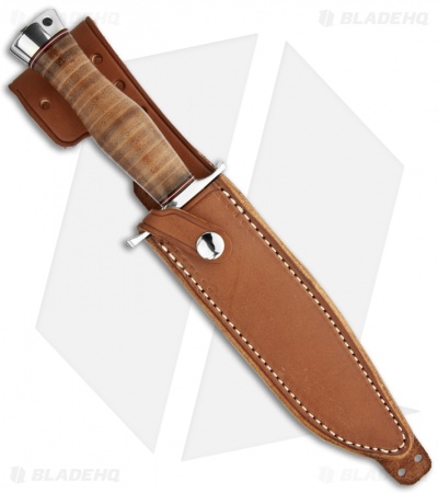 This Classic fixed blade knife from Blackjack knife embodies all that is elegant, classical when it comes to knives. This is a knife you would pass down from generation to generation. The satin-finish convex ground A-2 stainless steel blade features a classic clip point with a polished leather handle and stainless steel guard and pommel. Comes with a lanyard hole and genuine leather sheath with belt loop.