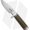 The 7″ blade is made from tough A2 steel, the clip point shape with large spine swedge makes it a excellent tool for processing wood, breaking down a medium to large animal or anything else you can throw at it! Black canvas micarta scales with red and white decorative felt accents fills the hand for a secure grip. Nickel silver pommel and finger guard add a visual contrast and extra safety in hand. Easily carry the Model 124 with the included high quality tanned leather belt sheath.