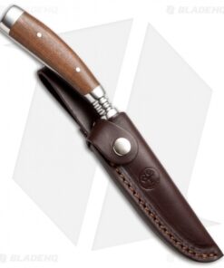 Hunters have often asked Boker for a high quality hunting knife produced in Solingen. So, Boker got together with the Austrian knifemaker Stefan Gobec, and figured out how to improve something good to become even better. The result is a hunting knife in a traditional form. However, Boker has used the proven N690 stainless steel, which sets standards with its excellent cutting performance in its class. The combination of production and the material gives this full integral nicker maximum stability, without affecting the cutting properties. The flat ground blade is 4.1 mm thick. The clean fitted ebony wood scales sit on a tapered tang, which not only reduces weight but also optimizes balance. The gently sloping handle offers unparalleled ergonomics and terminates with a crown handle, which also serves as a solid and non-slip thumb rest. Comes with slim sheath with detachable belt loop for carry.